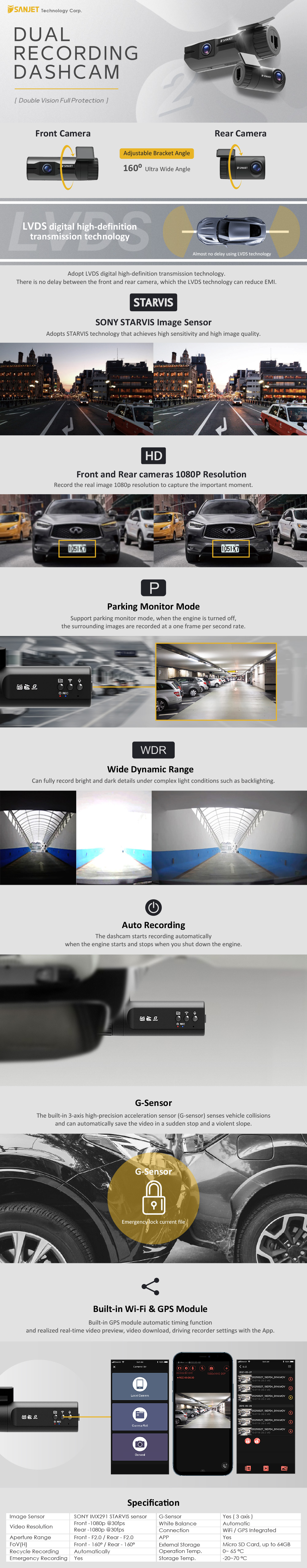 • 後鏡頭廣角160度設計